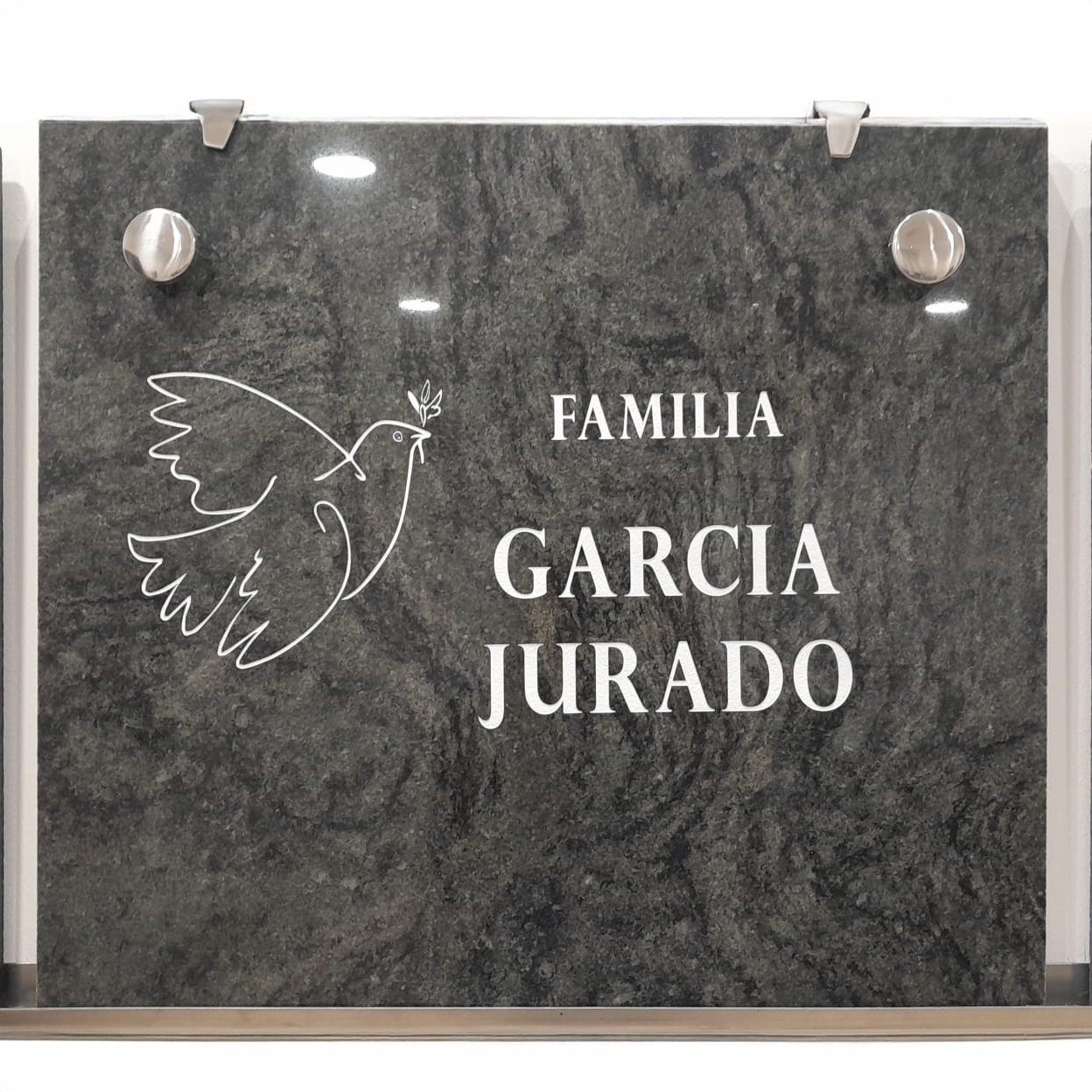Incluye Lápida granito verde OLIVA + Inscripción lápida + Pomos inox lisos + Colocación lápida y tiras