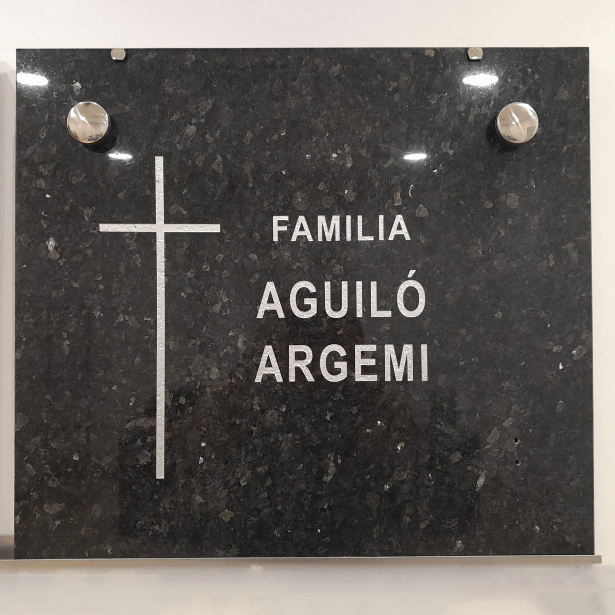 Incluye Lápida Granito negro sur africano + Inscripción lápida + Pomos inox lisos + Colocación lápida y tiras