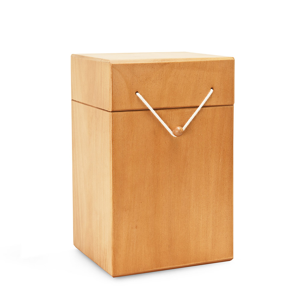 Urna d´alta qualitat, feta de forma artesanal. Mides: 17 x 15 x 27 cm Composició: Fusta de pi, goma de cotó i cautxú
