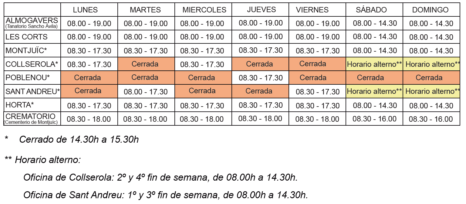 Cementiris de Barcelona informa que los horarios de los cementerios durante los meses de verano serán los mismos y no tendrán variación alguna, como siempre, de 8.00 a 18.00 horas.