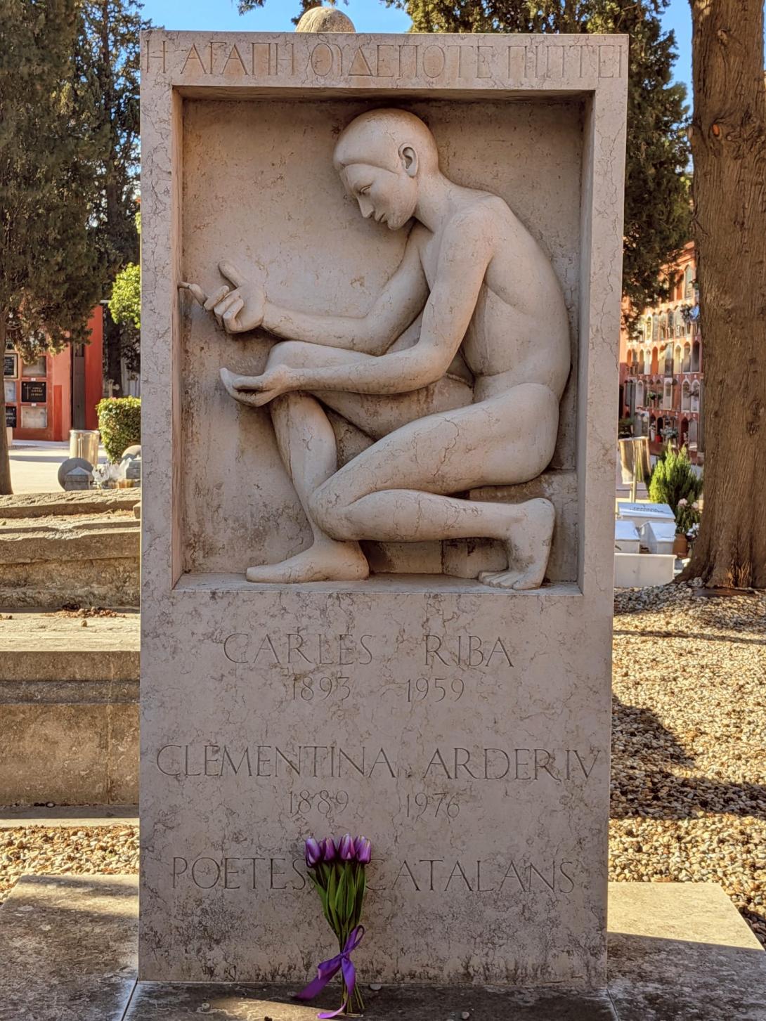 Nos encontramos ante una de las sepulturas más visitadas y respetadas de este recinto, donde descansa la poeta Clementina Arderiu (1889-1976). Aunque comparte espacio con su esposo, el gran intelectual Carles Riba, hoy estamos aquí para reivindicarla a ella: una mujer que supo construir una identidad literaria poderosa y singular en un mundo de letras dominado por hombres.
