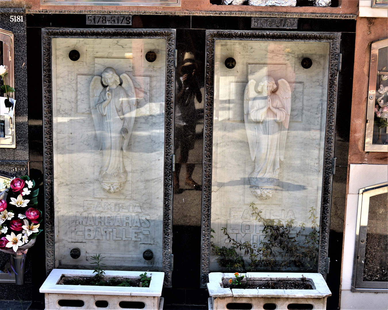 Aquests nínxols monumentals ocupen cadascú d’ells dos, els 5178-5179 per la família Margaras-Batlle i els 5166-5167 per la família López-Miró. Formen un conjunt ja que han estat realitzats per part de F. Graell amb dues lloses de marbre blanc i un marc de marbre negre que les envolta. Els relleus ens presenten dos figures angèliques: una ens demana silenci i l’altra té les mans en posició de pregària. Les figures estilitzades i els trets facials ens aproximen a les fórmules noucentistes. Aquesta tipologia de nínxol monumental que uneix dos o més nínxols no és comuna al cementiri de Sants però si la podem trobar en d’altres exemples catalans, com al cementiri d’Arenys de Mar, el cementiri de Sinera que ens evoca la poesia de Salvador Espriu. En aquest cementiri mariner tenim nou nínxols monumentals datats entre 1918-1920. En absència de panteó o sepultura diferenciada, aquesta tipologia permet mostrar el poder i prestigi de les famílies amb un cost inferior als drets de sepultura dels grans formats monumentals.